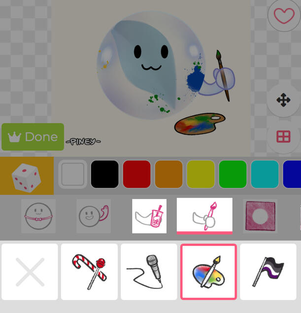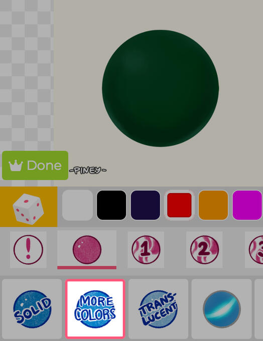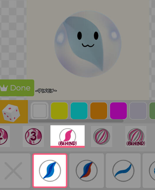I've shown a disclaimer first for anyone who chooses not to read the FAQ but still might be confused - close this and you will be able to see your marble. Each category in the menu will add assets onto your marble, and you can have as many or as few as you'd like. Anything with an "X" button is able to be removed.